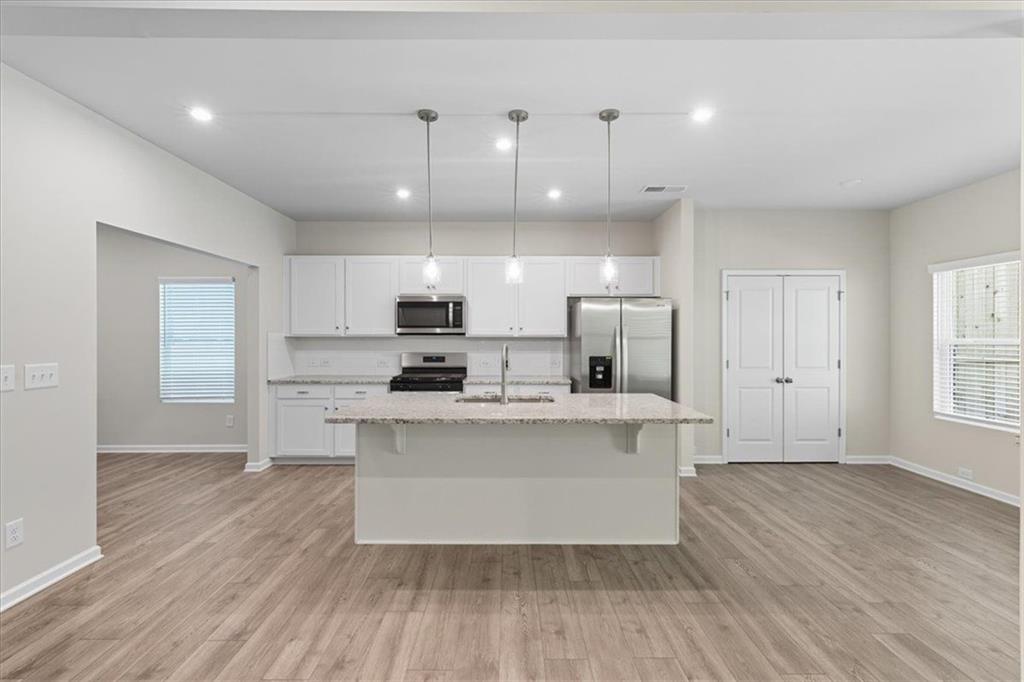 BAYBERRY - TOWNHOME AA. Welcome to Your Exceptional New Home at Park Center Pointe. Step into a newly constructed Corner lot home designed to stand apart from the ordinary. The Bayberry Floor Plan offers a spacious, open-concept layout filled with high-quality finishes that make every day feel special. Whether you envision a dedicated home office or a traditional dining room, this versatile floor plan adapts to your lifestyle. Enjoy luxury vinyl plank flooring throughout the main level, paired with sleek stainless steel appliances. The kitchen features elegant granite countertops, while marble accents elevate the upper level. Loaded with a move-in ready package including blinds, fridge, washer and dryer! Plush carpet with 5-inch pad brings comfort to the second floor, excluding the bedrooms and laundry room for practical design. Step outside and enjoy the day under your covered patio with a fan to keep you cool. Discover comfort, style, and functionality-make yourself at home in the Bayberry at Park Center Pointe.