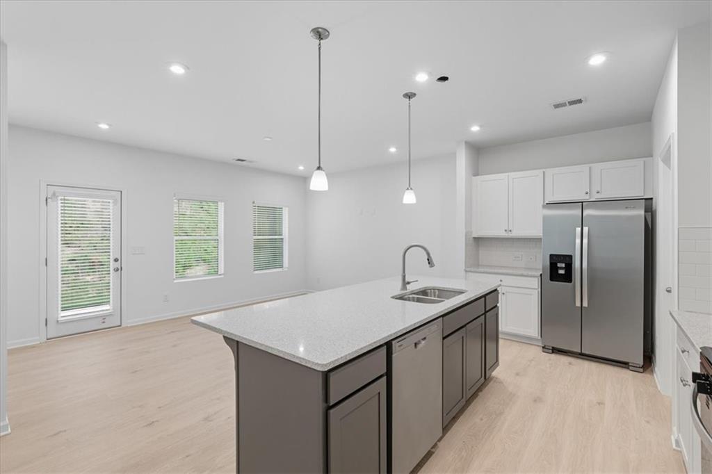Wisteria CC Floor plan. Step into a newly constructed home designed to stand apart from the ordinary. The Wisteria Floor Plan offers a spacious, open-concept layout filled with high-quality finishes that make every day feel special. Whether you envision a dedicated home office or a traditional dining room, this versatile floor plan adapts to your lifestyle. Enjoy luxury vinyl plank flooring throughout the main level, paired with sleek stainless steel appliances. The kitchen features elegant Quartz countertops, while marble accents elevate the upper level. Loaded with our move-in ready package including blinds, fridge, washer and dryer. Plush carpet with 5-inch pad brings comfort to the second floor, excluding the bedrooms and laundry room for practical design. Discover comfort, style, and functionality-make yourself at home in the Wisteria at Park Center Pointe.