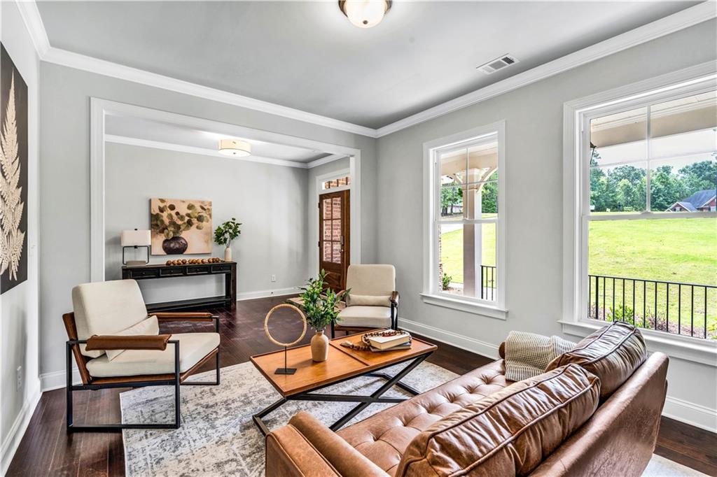 Lot 21 – The Cleveland by Kerley Family Homes - Move-In Ready! Step into a welcoming foyer that sets the tone for this beautifully designed home. A formal dining room with a stunning coffered ceiling offers an elegant space for gatherings, while the adjacent flexible living room is perfect for a home office or quiet study. The spacious family room features a cozy fireplace framed by custom built-ins and flows seamlessly into the open-concept kitchen. Home chefs will love the oversized island—ideal for meal prep, entertaining, or serving up after-school snacks. A large walk-in pantry provides plenty of storage, and the mudroom off the garage features built-in shelving and a bench to keep daily essentials organized. Upstairs, the primary suite is truly a retreat, accompanied by four generously sized secondary bedrooms and three full bathrooms—plenty of room for everyone to spread out comfortably. Located in a community surrounded by serene nature and endless outdoor recreation, this home blends luxury, comfort, and lifestyle effortlessly. Schedule a tour today! Hours: Sunday – Monday: 1 PM – 5 PM, Tuesday – Wednesday: By appointment only, Thursday–Saturday: 11 AM – 5 PM.