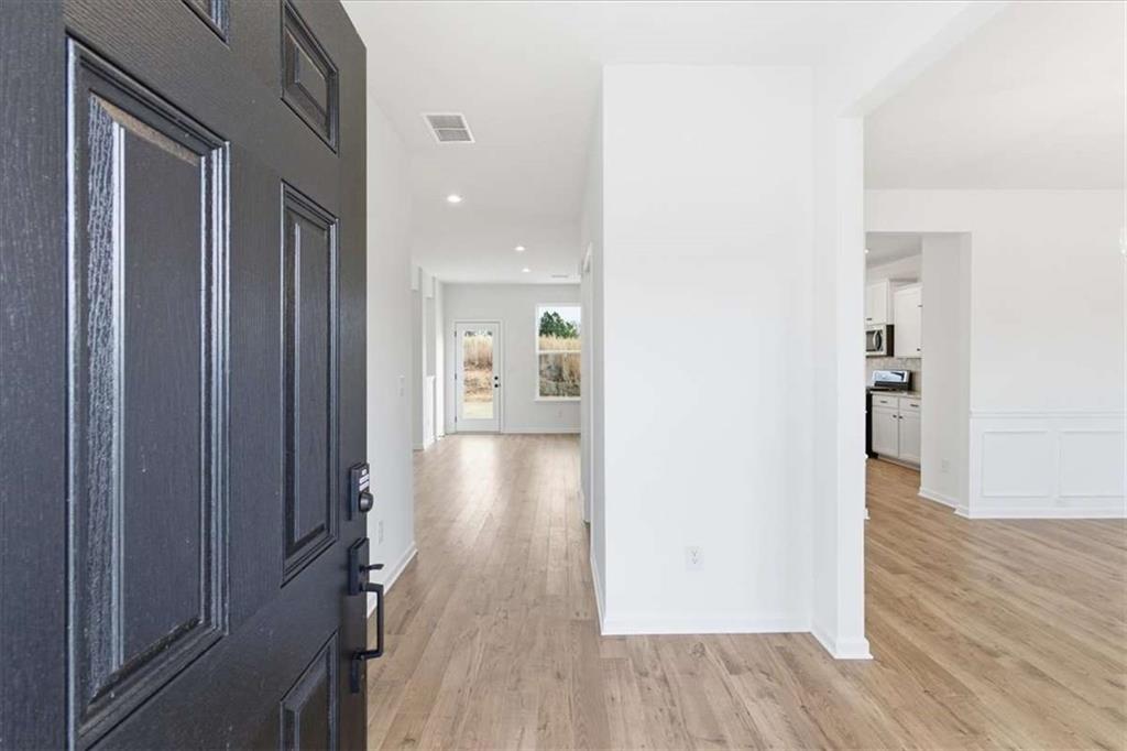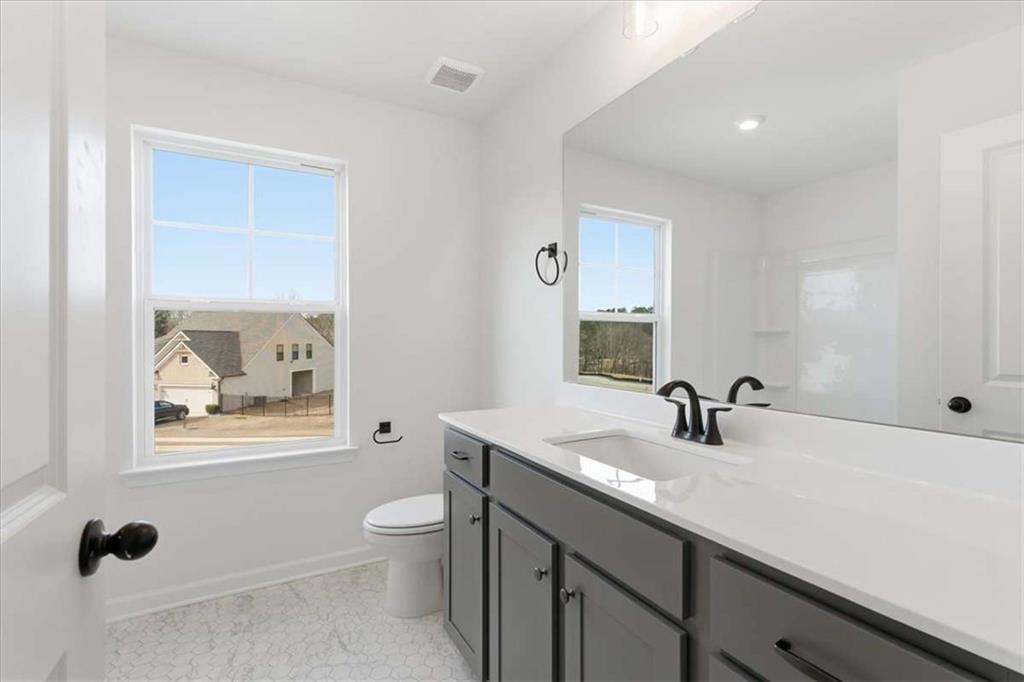 Ready Now! Axley Plan- This well-designed 4-bedroom, 2.5-bath home features an open-concept layout with 9’ ceilings on the main level and laminate plank flooring throughout the first floor. The upgraded kitchen offers luxury finishes, soft-close cabinets, a gas range with double ovens, stainless steel microwave and dishwasher, and upgraded black light fixtures, ideal for everyday living and entertaining. Enjoy outdoor living on the rear patio with a gas grill line installed. Upstairs, the spacious primary suite includes a large walk-in closet and a well-appointed bath. Three additional bedrooms, a full bath, and a convenient upstairs laundry room complete the second floor. Two-car garage and located in a sought-after community with easy access to I-20, Arbor Place Mall, shopping, and dining. Builder’s warranty and Pestban system included.