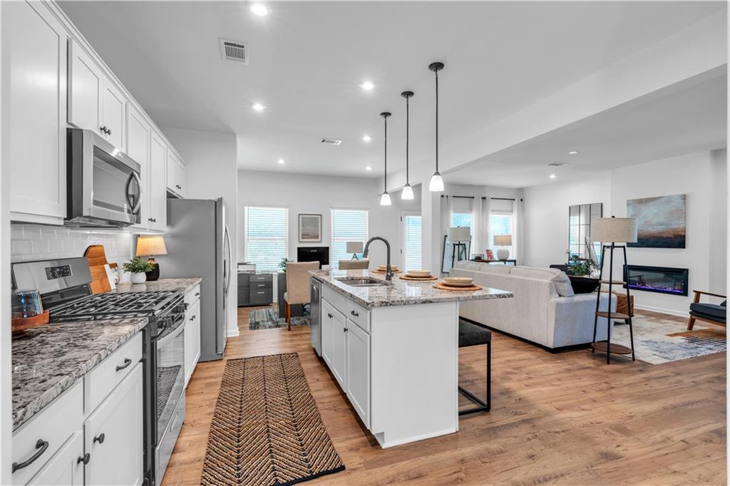 Bayberry – Single Family CC Ready Now. Bungalow Series Designed with comfort and functionality in mind, 3-bedroom, 2.5-bath home, with potential for a 4th bedroom in the basement offers lots of thoughtfully planned space and is perfect for everyday living and entertaining. Enjoy 9' ceilings on the main level, an open-concept layout that seamlessly connects the kitchen, dining, and family room, plus options like a cozy fireplace and rear patio. The kitchen is fully completed with granite countertops, stained cabinets, and a complete appliance package -including washer and dryer so you're move-in ready from day one. With four spacious bedrooms upstairs, energy-efficient features throughout, and charming curb appeal, the Bayberry CC brings modern comfort home and craftsmanship. Suited on a cul-de-sac street and featuring a lovely and private lot, this home is perfect for those looking for a location close to the city but tucked away for a little peace and tranquility. All located in a swim/tennis community. Ask about or limited time additional incentives, allowing you to pick the perk to best fit your needs. *Photos are of a previously built home of the same floorplan and are for illustrative purposes only. Features, finishes, and layout may vary. Basement not shown in photos.*
