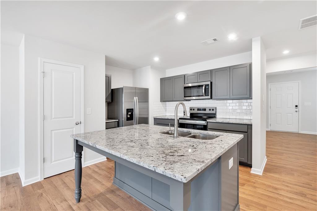 Move-in ready and full of charm, the Crape Myrtle at Village Green is a well-designed 3-bedroom, 2.5-bath new construction townhome. The open-concept main level features LVP flooring, a stylish kitchen, upgraded granite countertops, tile backsplash, and a spacious island with overhang--perfect for entertaining or everyday living. All appliances are included for added convenience. Upstairs, the private primary suite offers a spa-like bathroom with tile flooring, double vanities, and 2 walk-in closets. Located in Adairsville with easy access to I-75, Village Green offers affordable, low-maintenance living with builder warranties and 100% USDA financing options available. Ask about our builder-paid incentives when using our preferred lender. Current Incentive: $5,000 in closing costs plus *"PICK YOUR PERK" Option A) Choose 4.75% 30 yr fixed rate for FHA, VA or USDA OR 5/1 ARM-Conventional for standing inventory only. B) Choose $7,500 in additional seller paid closing cost OR $5,000 in seller paid closing cost AND $5,000 design center credit. C) $15,000 in design center credit. *Conditions Apply.